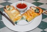 with spinach, tomatoes, fresh garlic, parmesan and mozzarella cheese with side of marinara sauce.