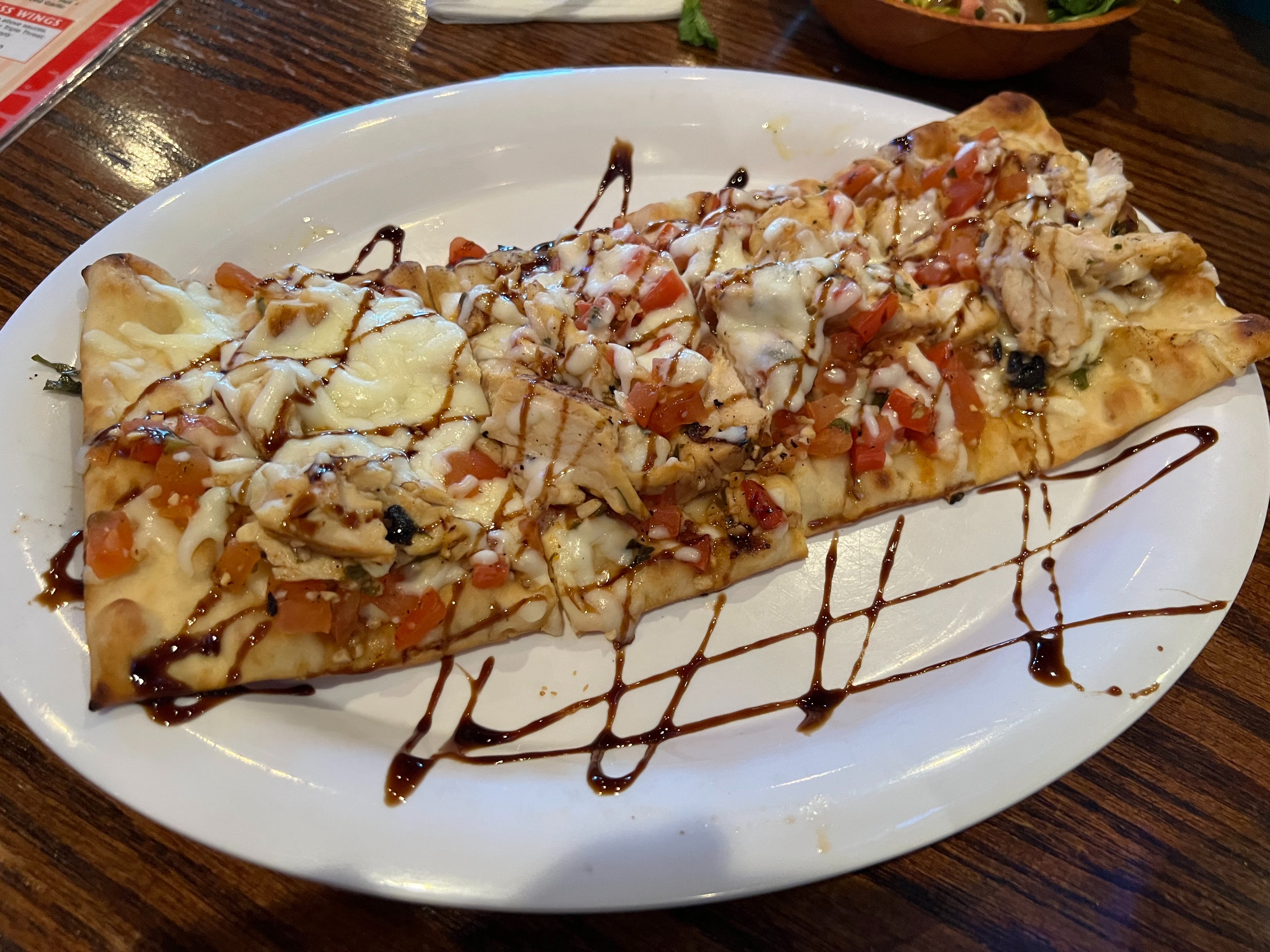 A large flour tortilla filled with chicken, onions, peppers & cheese. Served with sour cream & ranch.