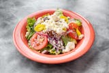 Tomatoes, cucumbers, onions, olives, and feta cheese in an olive oil dressing.