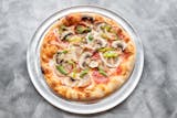 Pepperoni, sausage, mushrooms, peppers, and onions.