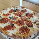 Fresh basil, marinara, fresh-sliced mozzarella, and Parmesan — timeless and delicious.