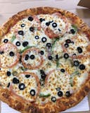 Mushrooms, black olives, onions, green peppers, tomatoes, fresh garlic.
