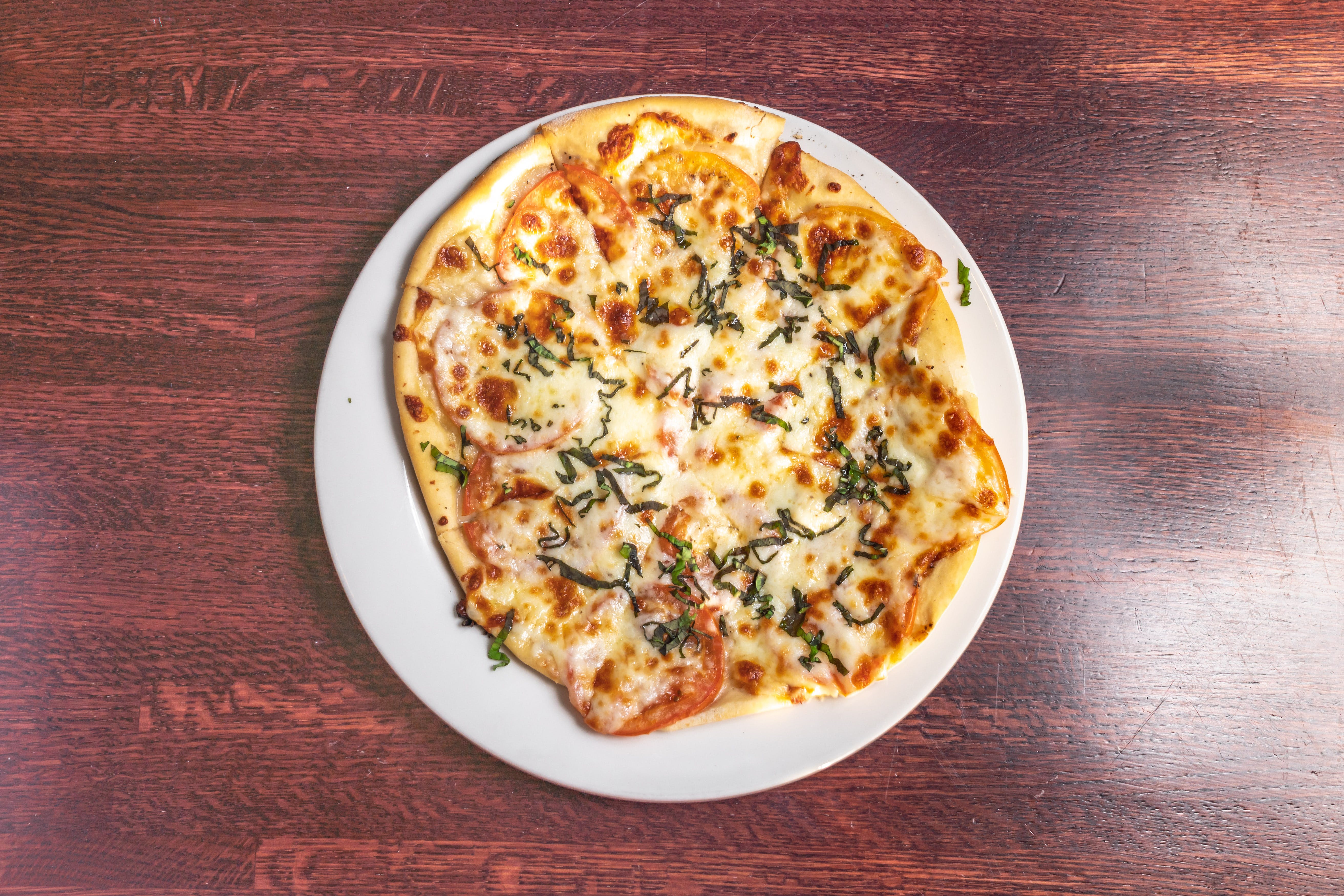 Fresh tomatoes, basil, olive oil, romano and topped with mozzarella.