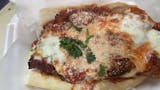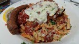 Our famous #1 selling dish. Thin slices of breaded eggplant layered with marinara sauce & mozzarella cheese, side of penne pasta marinara sauce.