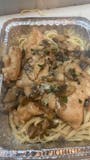 Boneless chicken breast lightly floured & sauteed with mushrooms in a marsala wine sauce over a bed of linguine.