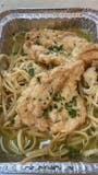 Boneless chicken breast coated with a light fluffy batter sauteed in a butter lemon sauce over bed of linguine pasta.
