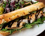 Garlic bread, pesto aioli, mozzarella, arugula, and balsamic vinaigrette.