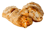 Your choice of sauce, chicken, tomatoes, onions, green bell peppers, bacon, signature cheese blend, wrapped in a golden-brown crust, brushed with garlic butter, and sprinkled with parmesan cheese. Comes with your choice of dipping sauce.