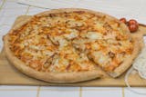 Ranch and buffalo style hot sauce base, grilled chicken strips, parmesan cheese, banana peppers, and gourmet cheese blend.