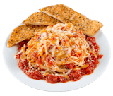 Served with your choice of homemade meat sauce, tomato vegetarian sauce or Alfredo sauce. Include personal 8'' garlic bread and Parmesan cheese.
