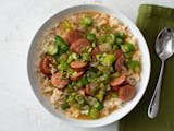 This delicious soup is crafted with big pieces of chicken meat sausage, okra, peppers and tasty spices.