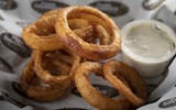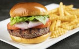Burger topped with our tangy BBQ sauce, cheddar cheese, bacon, and onion rings.