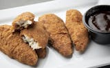 A lightly breaded cheesecake roll, deep fried and rolled in cinnamon and sugar.
