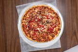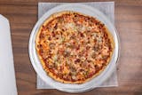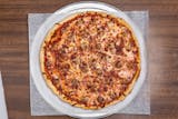 Sausage, pepperoni, black olive, green pepper, mushroom, onion.