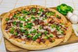 Juice slices of steak, onions, green peppers, mushrooms, Sarpino's gourmet cheese blend & your choice of sauce.