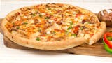Chicken strips, Canadian bacon, crisp bacon, fresh tomatoes, green peppers, ranch dressing with Sarpino's gourmet cheese blend & sprinkled with sharp parmesan cheese.