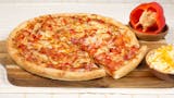Canadian bacon, Canadian ham, smoked bacon, mushrooms, pepperoni and Sarpino's gourmet cheese blend.