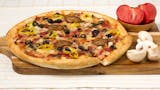 Loaded with pepperoni, Italian sausage, Canadian bacon, onions, mushrooms, red and green peppers, Parmesan and Sarpino's gourmet cheese blend.