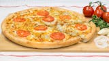 Canadian bacon, pepperoni, Italian sausage, onions, sliced tomatoes, fresh basil & Sarpino's gourmet cheese blend.