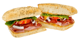 Salami, pepperoni, Canadian bacon, capicola & Sarpino's gourmet cheese mix topped with onions, Romaine lettuce, tomatoes, & your choice of Italian, Dijon mustard or basil pesto sauce.
