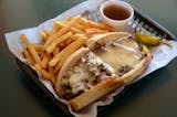 Italian beef, onions, giardiniera, garlic sauce on top.
