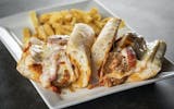 Half a slab of ribs & half pound of jumbo fried shrimp served with fries, coleslaw & breadstick.