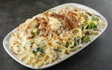Fettuccini alfredo with broccoli & mushroom, topped with grilled or fried chicken breast & melted mozzarella cheese.