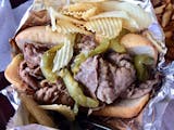 Juicy, thin, sliced roast beef, spiced au jus, Italian roll, giardiniera peppers dry, dipped, or wet.