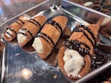 4 Cannolis with Chocolate Chip filling topped with Chocolate Drizzle