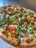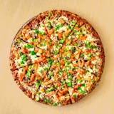 Our Signature Pizza with our delicious Tikka sauce, tikka chicken, fresh mozzarella cheese, fresh Mushrooms, crisp red onions, crisp bell peppers, freshly chopped garlic, ginger, green chilies and fresh cilantro.