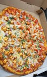 This is a traditional American style pizza with a little bit of everything. With our freshly made Marinara Sauce and topped with Fresh diced Mozzarella Cheese, Sliced Pepperoni, Canadian Bacon, Salami, Fresh Mushrooms, Crisp Red Onions, Fresh Green Peppers, Black Olives, Italian Sausage and Ground Beef.