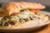 Shaved rib-eye steak, mushrooms, onions, green peppers, lettuce, tomatoes, mozzarella cheese & cheddar & mayo.