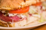Ham, sausage, salami, mushrooms, onions, green peppers, cheese, lettuce, tomatoes & mayo.