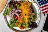 Large salad bowl with your choice of toppings. Dressings (2) are served on the side.