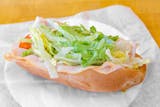 Lettuce, tomatoes, carrots, cucumbers, green peppers, red cabbage & pepperoncini.