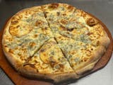 No Sauce. Blue cheese, smoked gouda, mozzarella, and parmesan. Also available in a flatbread.