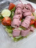 Genoa salami, ham, cooked salami, tomatoes, mozzarella cheese.