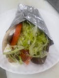 Thousand island dressing, tomatoes, crumbled hamburger, onions, pickles & lettuce.