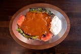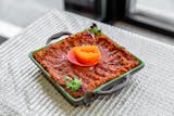 Smoked eggplant with garlic, spices, tahini sauce, extra virgin olive oil, & fresh lemon dressing.