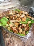 Grilled chicken, romaine lettuce, shredded cheese, croutons, and Caesar dressing.