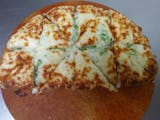 A sauceless pie with sliced tomato, fresh basil, fresh garlic & mozzarella cheese.