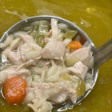 Chicken, fresh vegetables, herbs in homemade chicken broth.