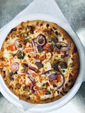 Greek style cold cut pizza - Genoa salami, cooked salami, capicola