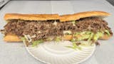 Loaded with juicy steak tips, lettuce, tomatoes, cucumbers, onion, olives, and pepperoncini.