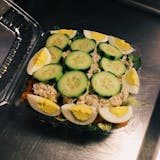 Tomatoes, cucumbers, onions, olives, and feta cheese served with Greek dressing.