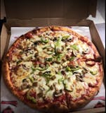 Pepperoni, sausage, onions, peppers, and mushrooms.