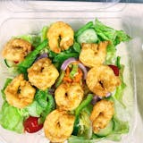 Spaghetti & marinated shrimp mixed with lemon garlic cream.