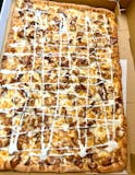 Buffalo chicken, chedder cheese and mozzarella cheese.