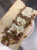 Steak, onions, peppers, cheese, mushrooms, salami and pepperoni.