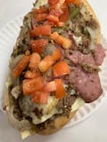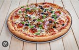 Pepperoni, sausage, hamburg, mushrooms, green peppers, onions, pizza sauce.